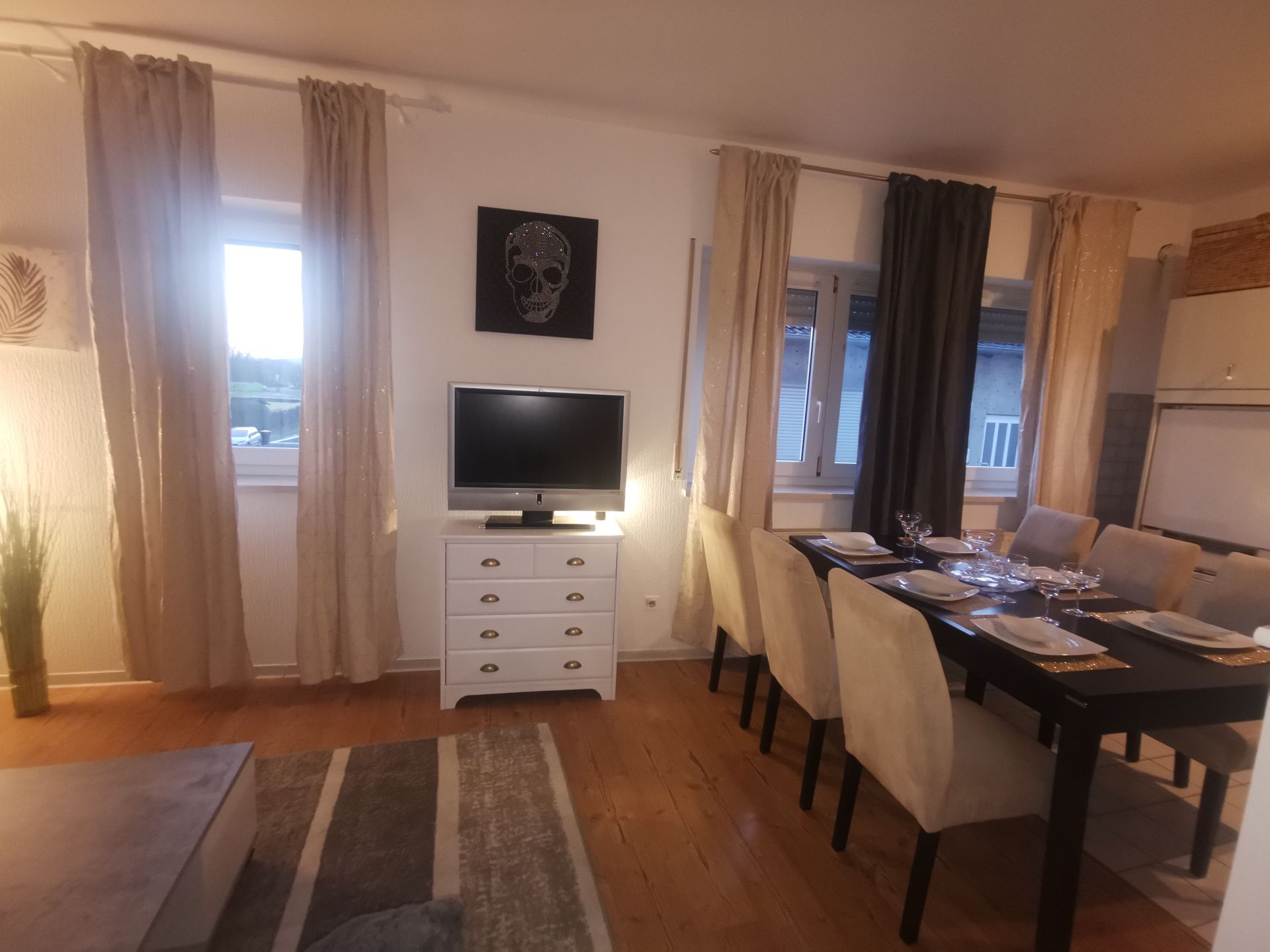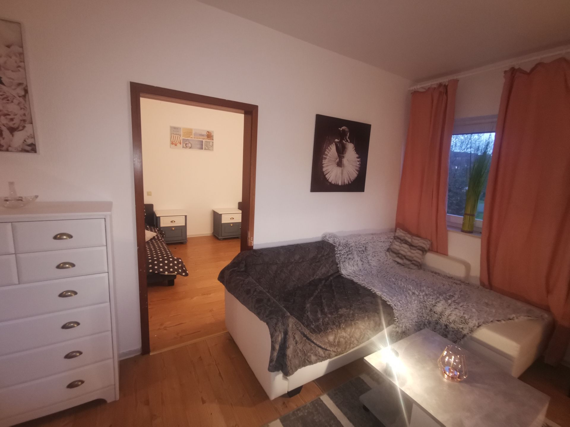Wohnung mit 1 Schlafzimmer, Wohnszimmer, 2 Betten.